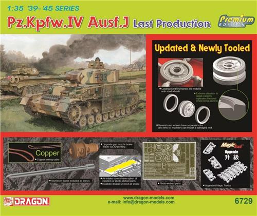 Breid je militaire modelbouwcollectie uit met de 1:35 Dragon 6729 Pz.Kpfw.IV Ausf.J - Last Production (Premium), een hoogwaardig schaalmodel dat de laatste productiefase van de Pz.Kpfw.IV Ausf.J vertegenwoordigt. Nu verkrijgbaar op uw speciaalzaak!
