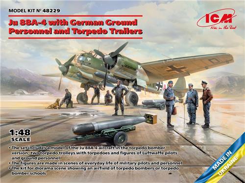 1:48 ICM 48229 Ju 88A-4 w/German Ground Personnel - Torpedo Trailers Plastic Modelbouwpakket