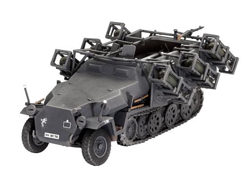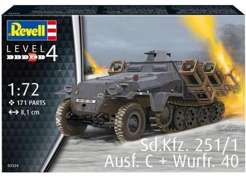 Bouw je eigen gedetailleerde model van het medium gepantserde infanteriegevechtsvoertuig Sd.Kfz. 251/1 Ausf. C + Wurfr. 4 met dit bouwpakket van Revell. Het model wordt geleverd op een schaal van 1:72 en bestaat uit in totaal 171 onderdelen. De lengte van het eindproduct zal 81 mm bedragen, en het heeft een moeilijkheidsgraad van niveau 4. Perfect voor de ervaren modelbouwer die op zoek is naar een uitdagend project.