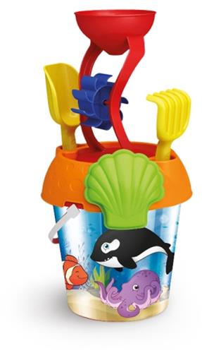 De emmer is voorzien van een vrolijk oceaanthema en de zandmolen voegt een leuke draai toe aan het zandspel. Met de verschillende accessoires kunnen kinderen hun eigen fantasiewereld creëren en zich uren vermaken in de zandbak of op het strand.