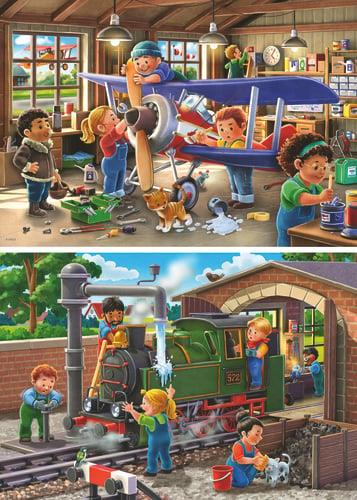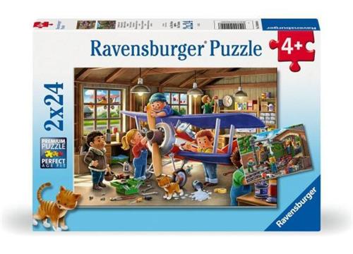 Ontsnap aan de dagelijkse sleur en duik in de kleurrijke wereld van Ravensburger puzzels met de 'Airplane & Train Repairs' puzzelset. Deze unieke set bevat niet minder dan twee puzzels van elk 24 stukjes, perfect voor jongens en meisjes vanaf 4 jaar. Met deze twee kinderpuzzels beleven kinderen dubbele puzzelpret terwijl ze hun favoriete motieven samenstellen.
