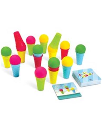 Het is een warme zonnige dag en iedereen staat in de rij om de nieuwe en verfrissende smaken van je ijs te proberen. Hoe sneller je je klanten bedient, hoe succesvoller je ijs zal zijn. Inhoud:- Spelregels, 16 ijskegels (4 groen, 4 roze, 4 geel, 4 blauw), 12 bollen ijs (4 groen, 4 roze, 4 geel), 54 bestelkaarten.