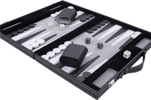 Backgammon 11 inch grijs/ zwart/ wit gestikt