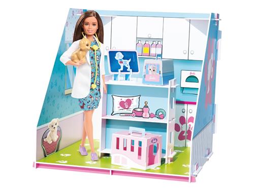 Barbie - Maak je eigen pop-up dierenkliniek set - Inclusief stickers - voor je Barbie accessoires - Exclusief Barbie pop