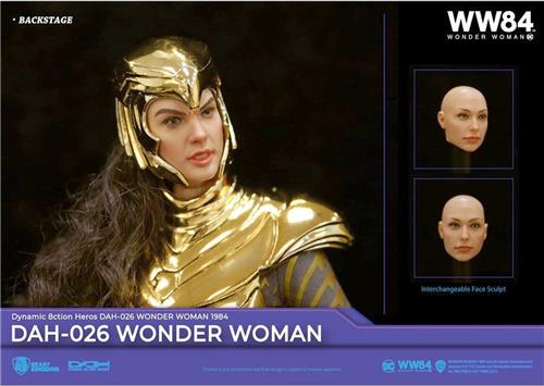 "Uit leugens wordt niets goeds geboren. En grootsheid is niet wat je denkt." Diana, prinses van de Amazone en beschermer van de mensheid is terug in haar tweede solo-uitje, dit keer in de neonverlichte jaren 80. Beast Kingdom's 'Entertainment Experience Brand' presenteert de nieuwste 'Dynamic 8ction Heroes' DAH voor een van de felste krijgerprinsessen die ooit de strips en films sierden. Dit keer vecht Diana voor liefde en vrijheid in de nieuwste speelfilm 'Wonder Woman 1984'. Met haar eigen DAH is Diana klaar voor alle uitdagingen die voor haar liggen. DC's Wonder Woman, recentelijk gespeeld door de fantastische Gal Gadot, deze keer met de beruchte 'Golden Eagle Armor'. Verwijzend naar oude Romeinse soldaten, het pantser is even glad als glanzend, met verreikende vleugels die Wonder Woman een verbazingwekkende nieuwe look geven.