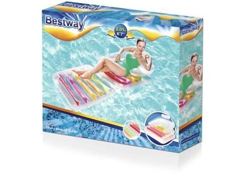 De Bestway Summer Colors Folding Lounge heeft een prachtige multicolor uitstraling, die niet alleen vrolijk is, maar ook warmte en leven toevoegt aan elke omgeving. De transparante bovenzijde biedt een uniek kijk op de kleurrijke interne I-beam constructie, wat zorgt voor extra stevigheid en comfort. De lounge is ontworpen met rug-, hoofd- en armsteunen, zodat je in alle rust kunt ontspannen.