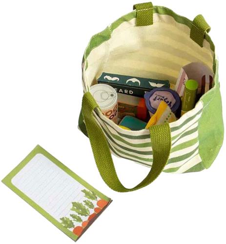 De Boodschappen speelset komt in een vrolijke gestreepte canvas tas en bevat ook een notitieblok waar kinderen hun eigen boodschappenlijstjes op kunnen maken. Dit bevordert niet alleen creativiteit, maar ook essentiële levensvaardigheden zoals communicatie en zelfvertrouwen. Terwijl ze zich inleven in de rol van aankoper of verkoper, ontdekken ze de wereld om hen heen op een speelse manier.