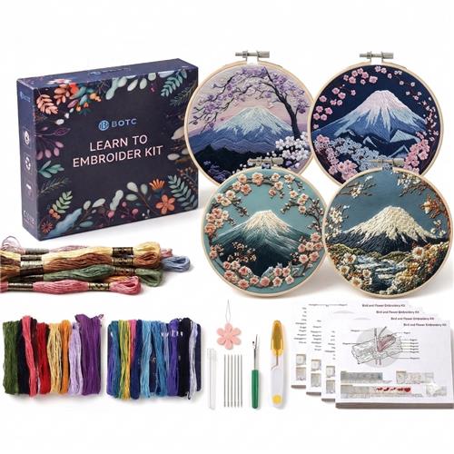 BOTC Bergborduurpakket - Sneeuwberglandschap Bloemen Borduurpakket van 4 - Hobby en Creatief - Borduren