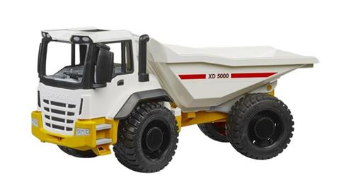 Met de Bruder Dumper XD5000 kiepwagen (03420) hebben kinderen vanaf 2 jaar een geweldige kiepwagen in handen. Deze kiepwagen, gemaakt van hoogwaardig acrylonitrielbutadieenstyreen (ABS) in wit en geel, is uitgerust met gelede besturing en loopvlakbanden voor extra grip. De volledig functionele kiepbak maakt spelen in de zandbak extra leuk.
