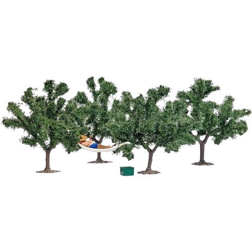 Het pakket bevat een man in een hangmat, samen met accessoires zoals 4 fruitbomen (elk 45 mm hoog) en een bierkrat met flesjes. De neutrale kleuren en het gebruik van hoogwaardig kunststof zorgen voor een realistische uitstraling. Met een CE-markering en universele taalhandleiding is deze set veilig en eenvoudig te monteren.