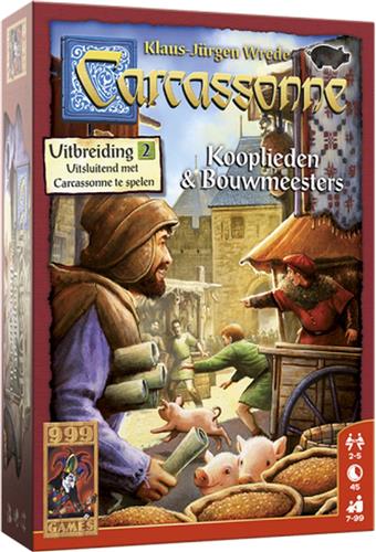 Kooplieden & Bouwmeesters is de tweede uitbreiding op het bekende legspel Carcassonne en introduceert een drietal nieuwe spelregels die het spel een extra dimensie geven. Zo kunnen zich nu handelswaren in een stad bevinden. Als je een stad afbouwt, mag je de handelswaren in die stad hebben. Verder zorgen varkens ervoor dat je aan het einde van het spel een punt meer krijgt voor de steden aan je weilanden. Tot slot kun je nu ook een bouwmeester op een weg zetten. Met Kooplieden en Bouwmeesters beleef je Carcassonne eens op een hele andere manier.