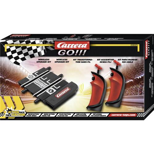 Ervaar het ultieme raceplezier met de Carrera GO!!! Wireless Upgrade Kit! Dit complete pakket maakt jouw Carrera GO!!! Racebaan volledig draadloos en eenvoudig te installeren. De set bevat een Wireless aansluitstuk en twee Wireless controllers, die elk een spannende rijervaring gegarandeerd bieden. Om de controllers van stroom te voorzien, heb je twee AAA-batterijen nodig, welke niet bij de set zijn inbegrepen.