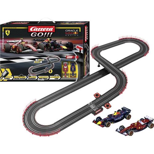 Beleef de spanning van de Formule 1 met de Carrera GO!!! Champions Racing set! Dit indrukwekkende racetrack van maar liefst 4,3 meter biedt jou de kans om de legendarische strijd tussen Max Verstappen en Lewis Hamilton na te spelen. Voel de adrenaline stromen terwijl je met de Oracle Red Bull Racing RB21 van Verstappen en de Ferrari SF-25 van Hamilton over het circuit raast. Deze set is ideaal voor zowel kinderen als volwassenen en zorgt voor urenlang speelplezier.