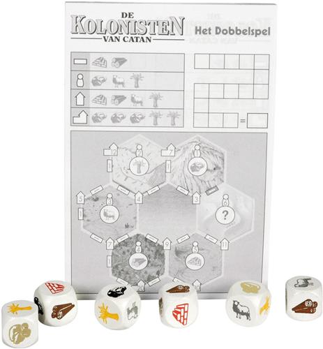 Dit vlotte dobbelspelletje speel je weg in een klein half uurtje en past prima in je reisbagage. In dit spannende spel bouwen de spelers Catan worp na worp op. Elke straat en elke nederzetting levert punten op. Een gelukkige hand en tactisch vernuft bepalen wie de beste ontdekker is. Je krijgt een velletje papier waar de uit Catan bekende straten, dorpen en steden op staan. Als je aan de beurt bent, mag je drie keer met de dobbelstenen gooien om een combinatie samen te stellen waar je wat aan hebt. Gooi je geen enkele combinatie, dan krijg je strafpunten. Dat kun je voorkomen door ridders te kopen, die je de mogelijkheid geven om een dobbelsteen naar een bepaalde grondstof te draaien. Zijn je scoreblokken op? Geen nood, je kunt extra scoreblokken bij ons bestellen.