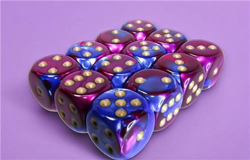 Chessex 12 x D6 Set Gemini 16mm - Blue-Purple/Gold