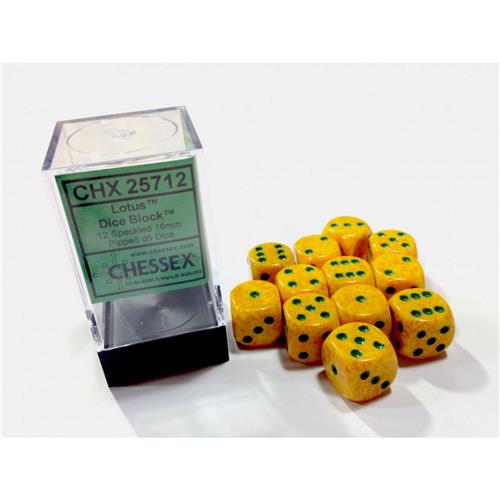 - Bij Bol.com kun je Chessex Lotus Speckled D6 16mm Dobbelsteen Set (12 stuks) kopen voor de prijs van € 23,91. Dit is vandaag de goedkoopste webshop.