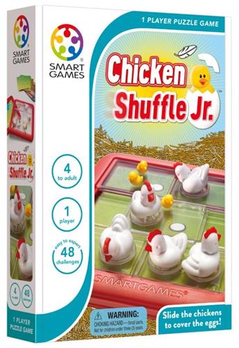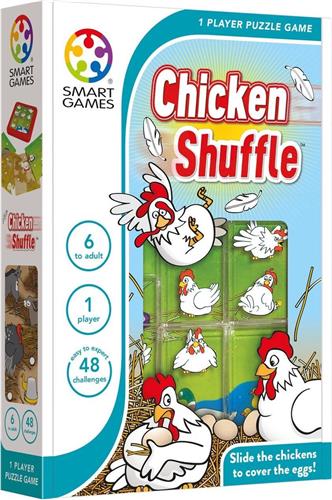 Met Chicken Shuffle van SmartGames krijg je maar liefst 48 uitdagende opdrachten voorgeschoteld. Dit educatieve spel is volledig Nederlandstalig, zowel het spel zelf als de handleiding. Het spel is gemaakt van hoogwaardig kunststof en is geschikt voor zowel jongens als meisjes vanaf 6 jaar. Met een speeltijd van ongeveer 15 minuten per spel en de mogelijkheid om alleen of met z'n tweeën te spelen, is Chicken Shuffle ideaal voor uren speelplezier.