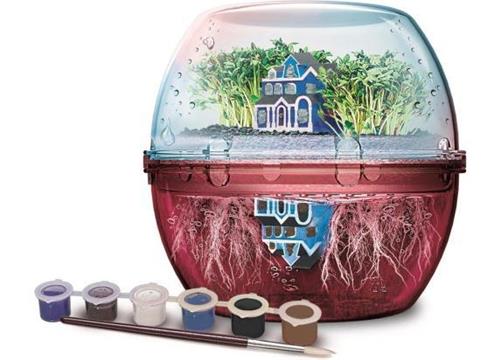 | Verpakkingsinhoud | Plastic bakje Waterkerszaadjes Geexpandeerde klei Mal voor huisjes Acrylverf Stickers Penseel Spateltje Zakje gips Calciumsulfaat Handleiding |
