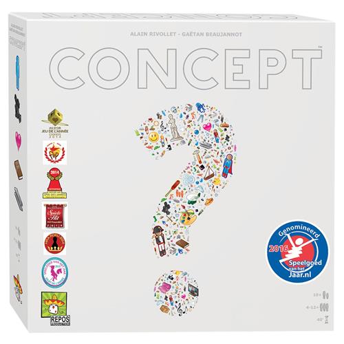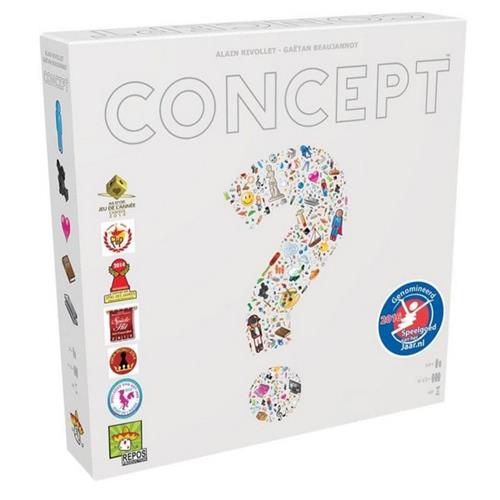 Concept, communiceren zonder te praten! Laat honderen voorwerpen, personages en titels raden door de universele iconen te combineren! Concept is een spel voor het hele gezin of voor een gezellig avondje met vrienden. Samenwerken is de boodschap. Een 2-koppig team trekt een Concept kaart en weet hierdoor het te raden concept (woord of zin). Door pionnen op het spelbord te plaatsen geven zij hints over het te raden concept. Het team geeft aan of wat geraden wordt juist of fout is en kan door middel van meerdere pionnen op het spelbord te plaatsen de anderen helpen het concept te raden. Je speelt niet tegen elkaar maar als het ware tegen het spel zelf!