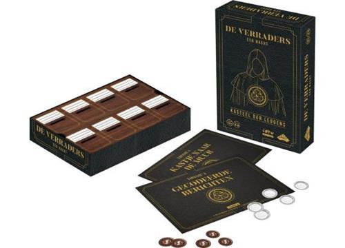 Stap in de wereld van misleiding en strategische keuzes met het spel De Verraders: Eén Nacht. Dit spannende partyspel, geïnspireerd op het populaire tv-programma, verandert jouw woonkamer in een echte strijdtoneel waar geheimen en bedrog centraal staan. Terwijl de Verraders zich onder de radar bewegen, doen de Getrouwen er alles aan om hen te ontmaskeren. Elke ronde volbrengt je unieke missies, deel je verdenkingen en stem je tijdens de cruciale Ronde Tafel. Eén beslissing kan alles veranderen!