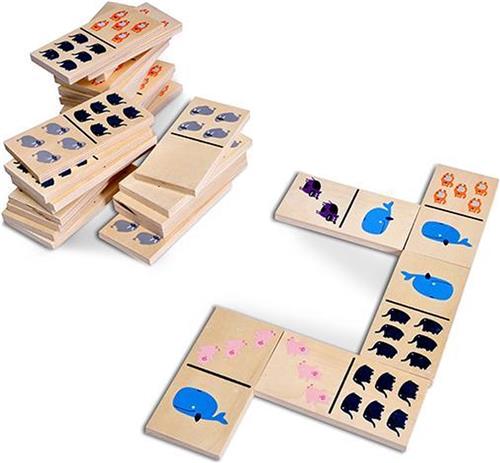 Het klassieke dominospel in extra grote uitvoering en met vrolijke dieren! Lukt het jou om te winnen? Dit spel bevordert logisch inzicht en behendigheid. Doordat de cijfers worden ondersteund door kleuren en afbeeldingen is het spel ook geschikt voor de wat jongere spelers.