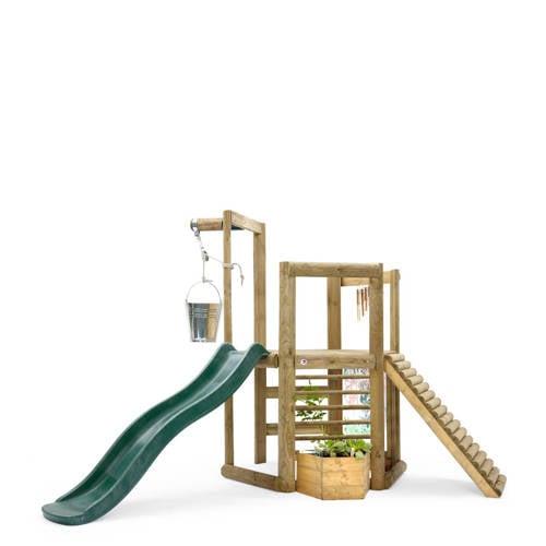 Met een glijbaan, schommel en klimwand is er genoeg te ontdekken en te spelen. De stevige constructie zorgt voor veilig speelplezier, terwijl de compacte afmetingen ervoor zorgen dat het speeltoestel in vrijwel elke tuin past. Dit houten speeltoestel is niet alleen leuk, maar ook een prachtige toevoeging aan je buitenruimte.