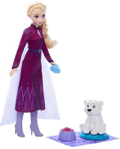 De Elsa pop is voorzien van haar kenmerkende lange vlecht en draagt een stijlvolle paarse outfit met hoge laarzen. Het maakt niet uit of het nu spelen of verzorgen is, kinderen kunnen de outfit zelfs aanpassen, wat zorgt voor eindeloze speelmogelijkheden. In deze set zit niet alleen Elsa, maar ook een schattig ijsbeerfiguurtje met vier handige accessoires: een dierenbedje, een warm dekentje, een borstel en een omkeerbare kom voor eten en drinken. Zo leren kinderen om zorgzaam en verantwoordelijk te zijn!