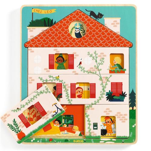 Djeco houten puzzel - educatief speelgoed 3 niveaus Chez Leo.