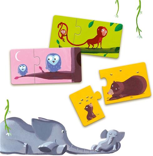 Djeco - Mama en baby - 12 x 2 stukjes is een leuke puzzelset voor zowel jongens als meisjes vanaf 2 jaar oud. De puzzel bestaat uit 24 stukjes van karton met een kleurrijk multicolore design met als puzzelthema dieren. Het compacte formaat van 14 cm lengte, 7 cm breedte en 3 cm hoogte maakt het ideaal voor kinderen en volwassenen om samen van te genieten. De legpuzzel wordt geleverd in een verpakking met een gewicht van 0.31 kg en heeft een CE-markering voor zichtbare kwaliteit.