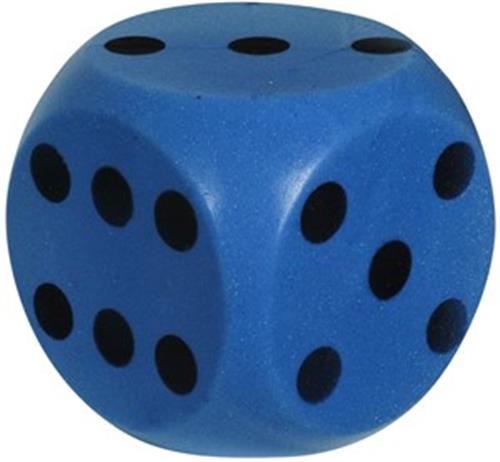 Een grote dobbelsteen van 15 cm in de kleur blauw, gemaakt van zacht foam. Ideaal voor buitengebruik en grote groepen. De dobbelsteen is gemaakt van foam / schuimrubber en heeft een afmeting van 16 x 16 cm. Wordt geleverd in de kleur blauw.