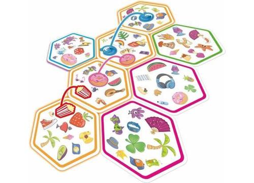 In het tactische kaartspel Dobble Connect zijn de kaarten niet rond, maar zeshoekig. En in plaats van 8 symbolen staan er nu maar liefst 10 symbolen op een kaartje! In Dobble Connect staat het vinden van het gemeenschappelijke symbool tussen de kaart in je hand en de kaarten op tafel centraal. Het spel begint met één startkaart in het speelveld. Vandaaruit moeten de teams kaarten aanleggen. Dit doe je door het gemeenschappelijke symbool te noemen en de kaart uit je hand op het speelveld aan te leggen. Het doel is om met je team zo snel mogelijk 4 kaarten op één rij te leggen. Iedereen speelt tegelijkertijd, dus pas op voor de andere teams en blokkeer ze met jouw kaarten voordat zij dat doen. Je speelt het kaartspel Dobble Connect met 2 tot 8 spelers vanaf 8 jaar. Als je met 2 tot 4 spelers bent kun je ervoor kiezen om ieder voor zich te spelen, maar vanaf 4 spelers wordt spelen in teamverband aangeraden. Teams kunnen hierbij ook een ongelijk aantal spelers hebben. Een potje Dobble Connect duurt ongeveer 15 minuten waardoor het een zeer geschikt kaartspel is om tussendoor te spelen. Maar door de hectiek en de lol die een potje oplevert wil je het eindeloos blijven spelen! Een ideaal spel voor familie en vrienden voor een middag of avond vol plezier. Dit supersnelle kaartspel kan en mag dus zeker niet ontbreken tijdens een spellenmiddag of avond, maar ook zeker niet tijdens verjaardagen, vakanties, vriendenweekenden en ga zo maar door.