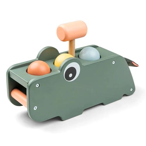 Met de Done By Deer Croco Hamerbankje - Green ontwikkelt je kindje de hand- oog coördinatie op een speelse manier. In het bankje passen drie gekleurde balletjes die je kindje er met het hamertje in kan slaan. Als je kindje de balletjes er in heeft geslagen, komen ze er aan de onderkant uit rollen. Dankzij de vrolijke kleurtjes wordt je kindje uitgedaagd met de hamerbank te spelen. De hamerbank is gemaakt van hoogwaardig materiaal en bestaat uit een hamerbank, drie balletjes en een hamertje.