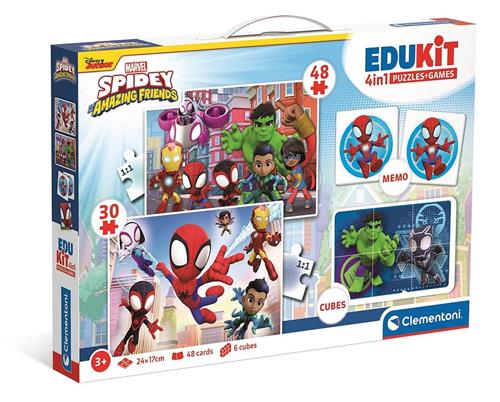 Met de EDUKIT 4 IN 1 SPIDEY educatieve Disney speelset kunnen kinderen samen met hun favoriete Disney personages spelen en leren! Deze uitgebreide kit bevat een puzzel van 30 stukken, een puzzel van 48 stukken, een memoryspel en 6 blokken. Het is een educatieve en leuke kit die het geheugen, logica, handvaardigheid en voorschoolse activiteiten stimuleert. De set is gemaakt in Italië en bevat alle beroemde Disney personages.
