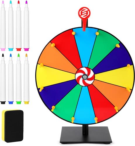 Op zoek naar een spannend en veelzijdig prijzenwiel voor al jouw evenementen? Het Equivera Spin-Prijswiel is precies wat je nodig hebt! Gemaakt van hoogwaardig PVC en ijzer, is dit draaiwiel stevig en duurzaam. De stabiele basisstandaard zorgt ervoor dat het wiel soepel en veilig kan draaien, zonder te glijden of te wiebelen.