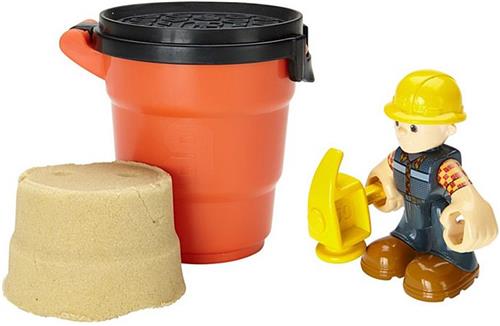 | Verpakkingsinhoud | - Bob de bouwer: 5 x 2,5 x 6,5 cm (lxbxh) - 1 Vormhamer: 3,51,5 x 4,5 cm (lxbxh) - Bouwemmer met deksel: 7 x 7 x 7 cm (lxbxh) - 70 Gram Kneed en Vorm Speelzand |