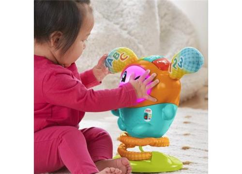 Druk op de muziek- en leerknoppen voor meer dan 75 liedjes, geluiden en zinnetjes, vrolijke lichtjes in verschillende kleuren en leuke stuiterbewegingen. Druk op de microfoonknop om op te nemen en af te spelen met grappige remix-effecten. Stimuleert baby's en peuters van 9 - 36 maanden om te dansen, te bewegen en mee te stuiteren.