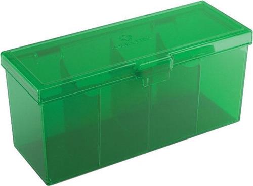 Met de groene Gamegenic Fourtress opbergbox kun je volledige decks, dobbelstenen, tokens en 320 kaarten met dubbele sleeves veilig opbergen. De stevige box is verkrijgbaar in 5 verschillende semi-transparante kleuren, waardoor de inhoud eenvoudig te identificeren is. Dankzij het geïntegreerde slot blijft de box veilig gesloten, terwijl je met het verwijderen van twee binnenwanden grotere compartimenten kunt creëren. Deze stapelbare boxen zijn zowel ideale reisgenoten als perfecte opslagoplossingen thuis.