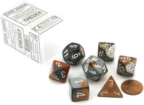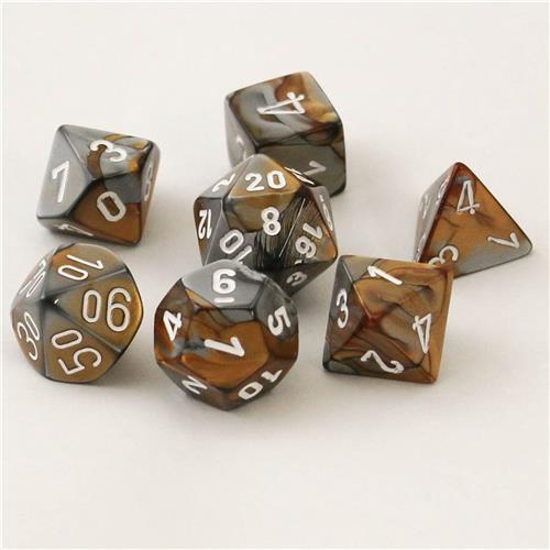 Gemini Polyhedral 7-Die Sets - Copper-Steel W/White