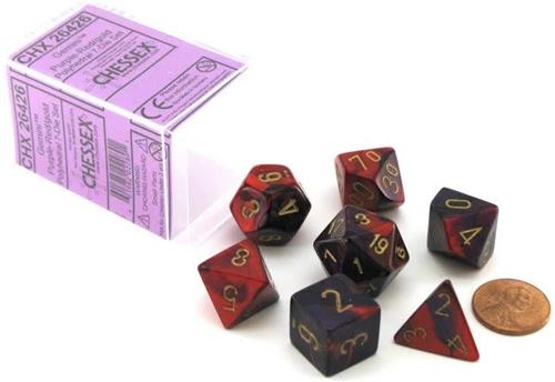 Controleer altijd voor aankoop de specificaties op de website van de webwinkel waar je Gemini Polyhedral 7-Die Sets - Purple-Red W/Gold aankoopt