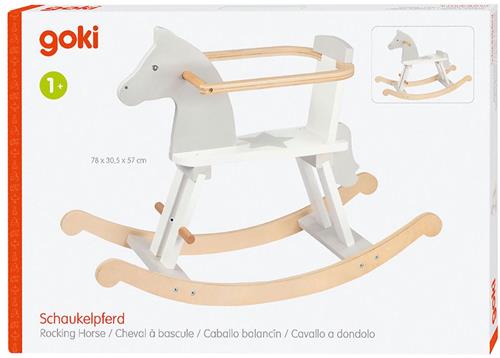 Laagste prijs € 56,33 voor Goki Hobbelpaard Junior Hout 78 Cm Wit/grijs is gemeten op 05-11-2025.