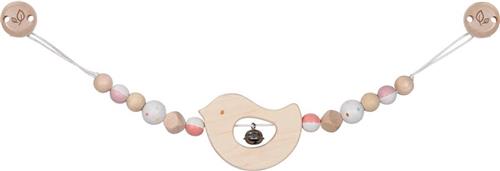 De GOKI Kinderwagenspanner met een schattige vogel is het perfecte speeltje voor onderweg! Deze kinderwagenspanner biedt niet alleen vermaak, maar stimuleert ook de zintuigen van je kindje. De vrolijke kleuren en vormen zorgen voor visuele stimulatie, terwijl het belletje geluid maakt wanneer eraan getrokken wordt wat de auditieve ontwikkeling stimuleert.