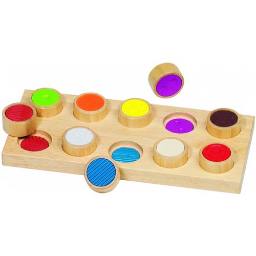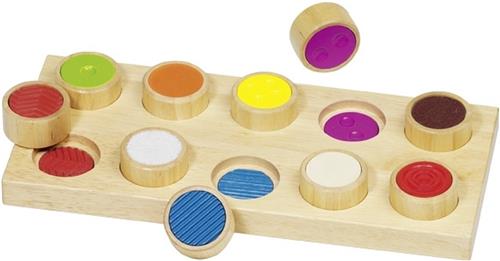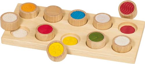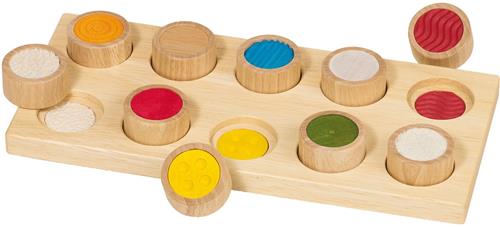 Met de Goki Tast Memo kunnen kinderen op een educatieve manier hun geheugen trainen. In dit leuke memory spel moeten ze met hun ogen dicht op zoek gaan naar de juiste speelstenen door te voelen. Het spel bevat 10 houten speelstenen en een speelbord, en is geschikt voor kinderen vanaf 2 jaar.