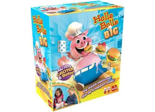 Holle Bolle Big is het leukste actiespel van dit moment Deze big krijgt geen genoeg van hamburgers. Wanneer hij teveel eet, ontploft zijn buik en springt zijn riem open Holle Bolle Big geeft volop plezier aan kinderen vanaf 4 jaar. Voor 2 tot 4 spelers.