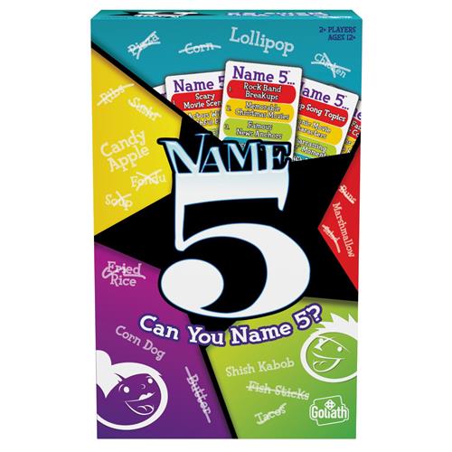 - Bij Bol.com kun je Goliath Name 5 - Bordspel - Trivia - Kun jij er vijf noemen? kopen voor de prijs van € 15,30. Dit is vandaag de goedkoopste webshop.