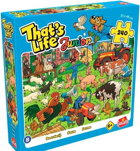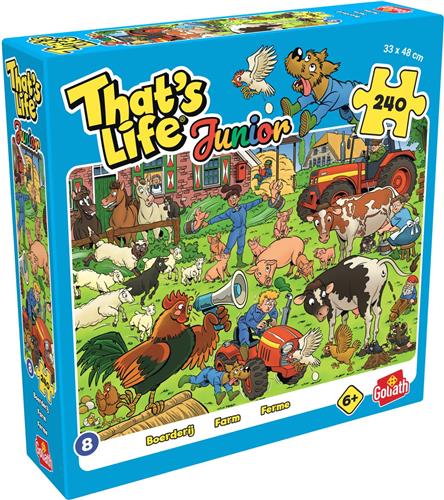 - Bij Spellenrijk kun je Goliath Puzzel That's Life Junior 8 Boerderij 240 stukjes kopen voor de prijs van € 7,95. Dit is vandaag de goedkoopste webshop.