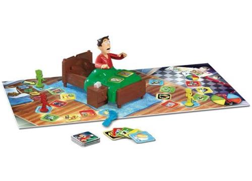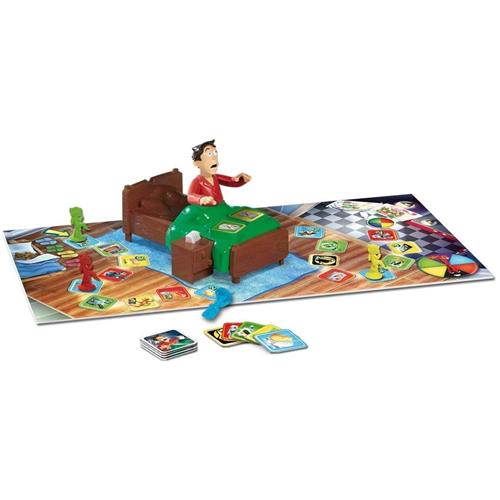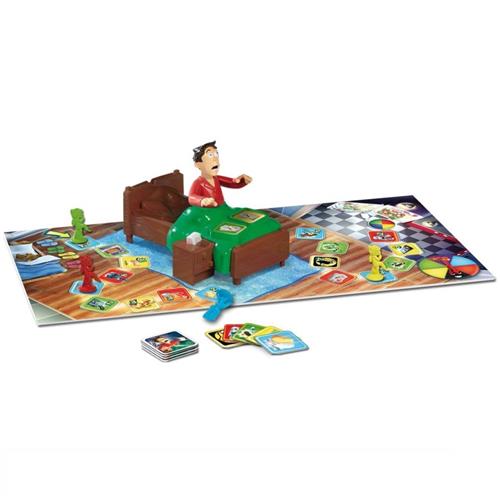 Het spel bevat een bord, een bed met knop, kaartjes, pionnen, een pijl, een stickervel en een handleiding. Goliath Sshh.. Maak papa niet wakker is een leuk spel voor kinderen en volwassenen om te genieten van speelplezier en spanning in de nacht.