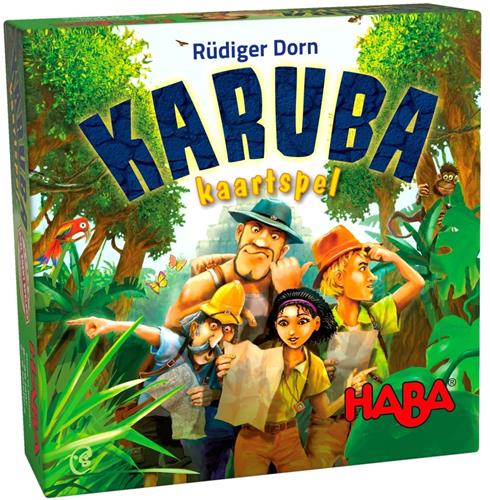 Karuba het kaartspel van het Duitse merk Haba is een legspel. De spelers kiezen tactisch en slim twee kaarten uit hun hand en maken het hun medespelers moeilijk. Want wie het laagste aantal heeft, verliest een kaart. Daarna leggen ze met deze kaarten een optimaal wegennet om hun avonturiers met hun tempel te verbinden. Wie voert zijn avonturier op het beste pad door de jungle? De winnaar is degene die waardevolle schatten heeft verzameld en punten heeft gewonnen met zijn tempel.