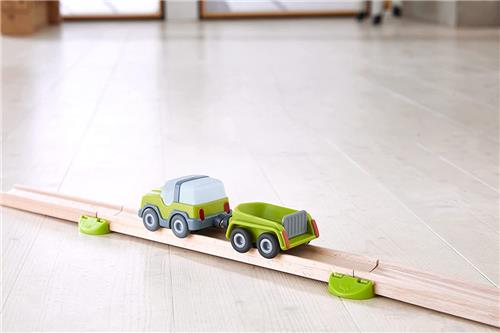 HABA Kullerbü Knikkerbaan - Terreinwagen met aanhanger