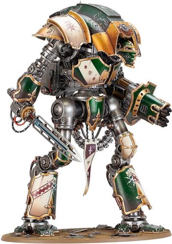 Met een hoogte die zelfs groter is dan zijn Questoris-klasgenoten, stapt de Knight Castigator over het slagveld om een bulderende salvo schoten af te vuren vanaf zijn armgemonteerde boutkanon, om vervolgens door vijandelijke bepantsering te snijden met zijn knetterende stormzwaard, zo lang als een Rhino gepantserd personeelsvoertuig. U kunt de ridder ook met een open luik bouwen, waarbij de piloot binnenin zichtbaar is. Het pakket bevat een verscheidenheid aan cosmetische opties, waaronder twee variantontwerpen voor kniebeschermers en scheenbeschermers, evenals vier rompgemonteerde pictogrammen één voor Loyalist, Traitor, Mechanicum en Questoris Household Knights.