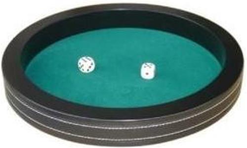 De Hot Games Dobbelpiste is een luxe dobbelbak met een diameter van 34 cm en een hoogte van 3,6 cm. De binnenzijde is bekleed met groen velours en de onderkant is bekleed met zwart vilt. Deze dobbelpiste wordt geleverd met 5 kunststof dobbelstenen, waardoor je direct aan de slag kunt. De dobbelpiste is gemaakt van mdf/hout en is bekleed met zwart kunstleren bies en witte stiksels. De kleur van de dobbelpiste is elegant zwart gelakt, wat zorgt voor een luxe uitstraling.
